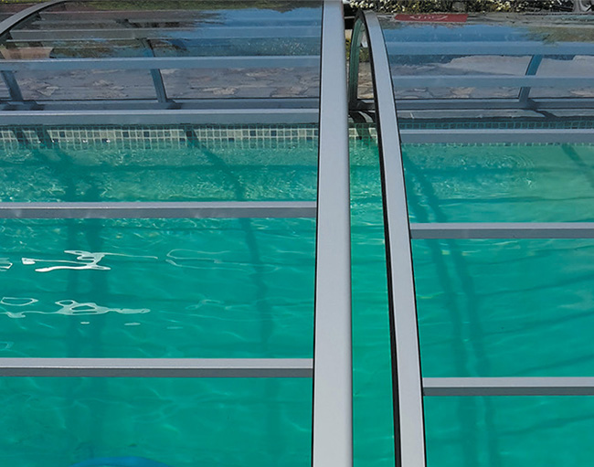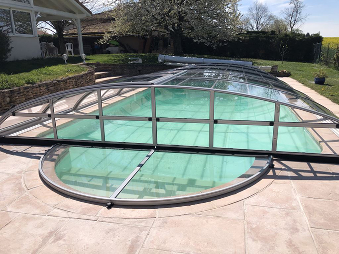 Façade relevable qui permet d'éviter les obstacles et d'accéder à la piscine abri fermé.